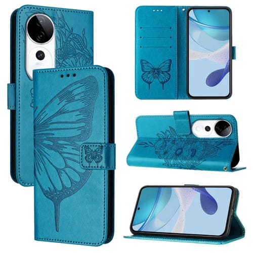 Funda de Cuero con Diseño de Mariposa En Relieve para El Teléfono Vivo S19 Pro (Azul)