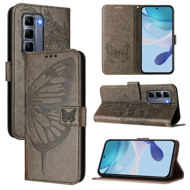 Funda de Cuero para Infinix Hot 50 Pro+ 4G con Diseño de Mariposa en Relieve (Gris)