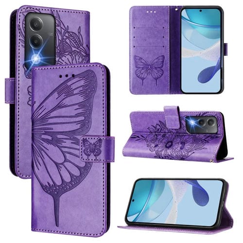 Funda de Piel con Diseño de Mariposa En Relieve para Oppo A80 5G (Morado Claro)