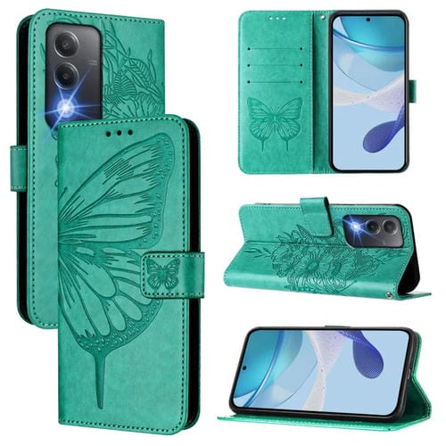 Funda de Piel con Diseño de Mariposa En Relieve para Oppo A80 5G Eu (Verde)