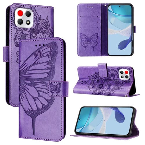 Funda de Cuero para T-Mobile Revvl 7 5G con Diseño de Mariposa En Relieve (Morado Claro)