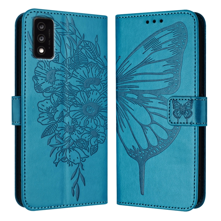 Funda de Cuero para TCL 30T T603Dl con Diseño de Mariposa en Relieve (Azul)