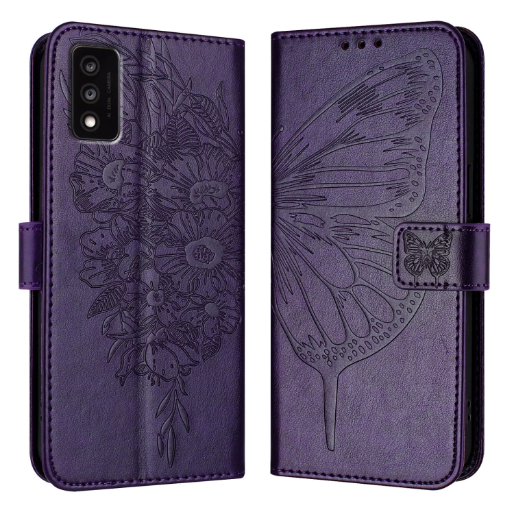 Funda de Cuero para TCL 30T T603Dl con Diseño de Mariposa en Relieve (Morado Oscuro)