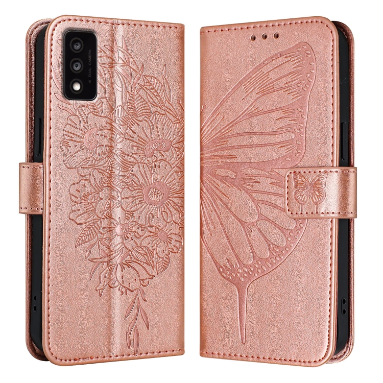Funda de Cuero para TCL 30T T603Dl con Diseño de Mariposa En Relieve (Oro Rosa)