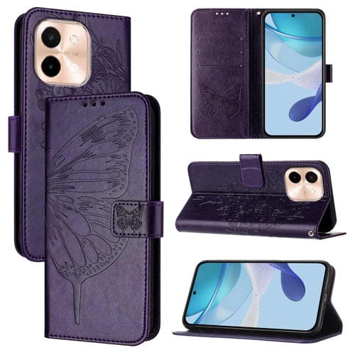 Funda de Cuero con Diseño de Mariposa En Relieve para Vivo Y28 4G (Morado Oscuro)
