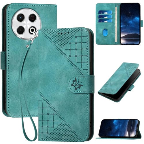 Funda de Cuero para Tecno Spark 30 Pro 4G con Diseño Mariposa y Cordón (Azul Claro)