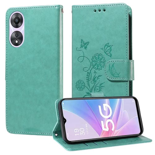 Funda de Cuero con Diseño de Mariposas y Flores En Relieve para Oppo A78 5G Global / A58X 5G / A1 Active (Verde)