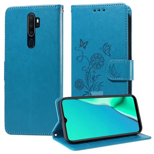 Funda de Cuero con Diseño de Mariposas y Flores En Relieve para Oppo A9 2020/A11X/A5 2020/A11 (Azul)