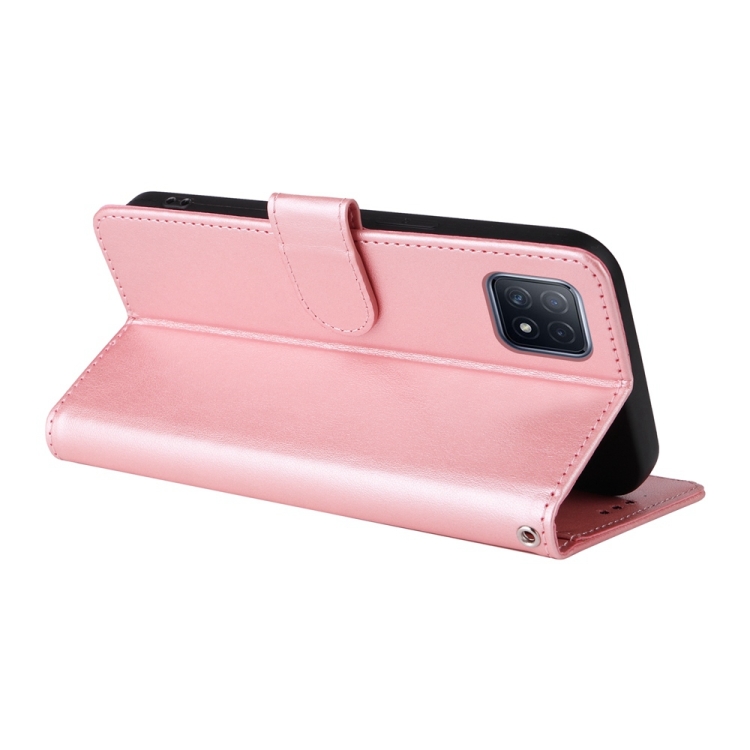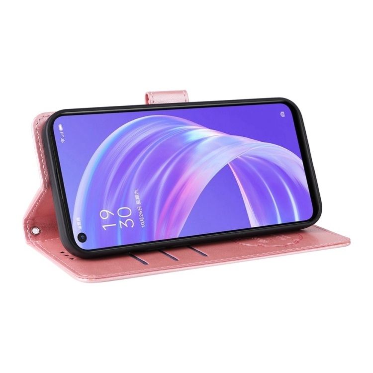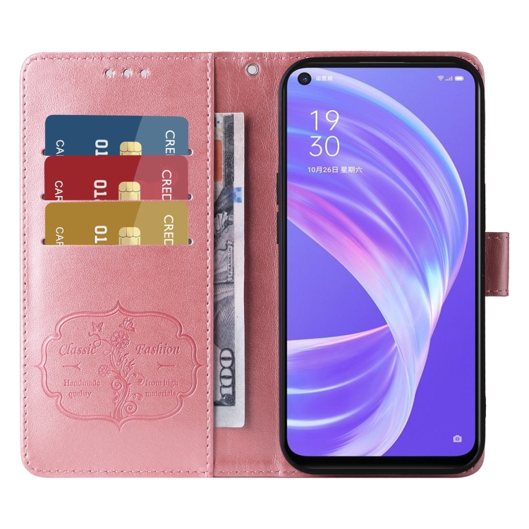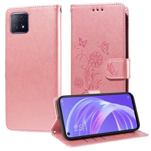 Funda de Cuero con Diseño de Mariposas y Flores En Relieve para Oppo A92S/A53 5G/A72 5G/A73 5G (Oro Rosa)
