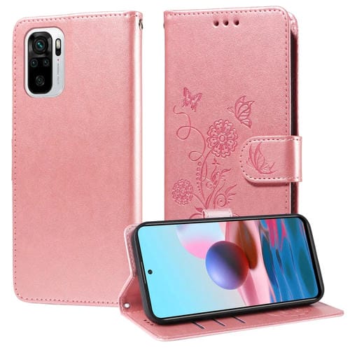 Funda de Cuero con Diseño de Mariposas y Flores En Relieve para Redmi Note 11 Se 4G (Oro Rosa)