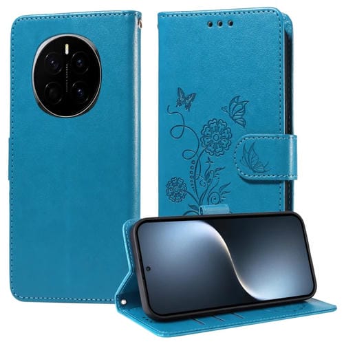 Funda de Cuero Honor Magic7 con Diseño de Mariposas y Flores en Relieve (Azul)