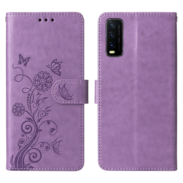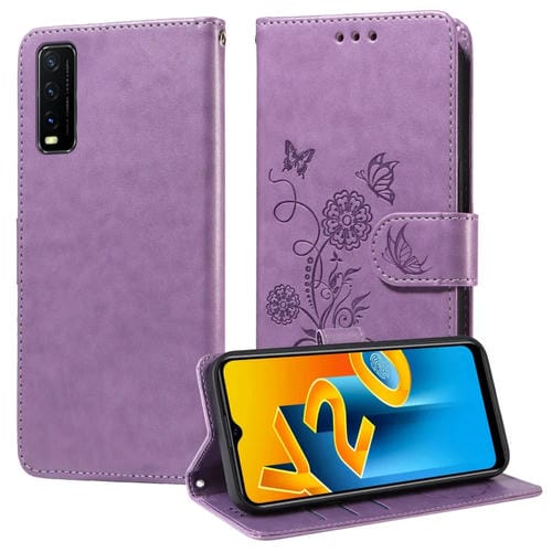 Funda de Cuero con Diseño de Mariposas En Relieve para Vivo Y20/Y20I/Y20S/Y12S (Morado)