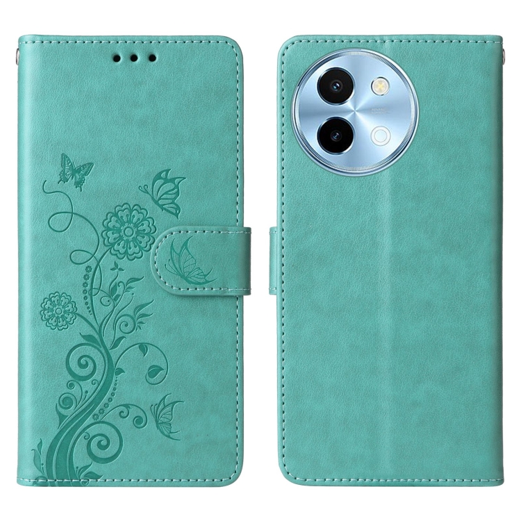 Funda de Cuero con Diseño de Mariposas y Flores En Relieve para Vivo Y38 5G / T3X 5G (Verde)