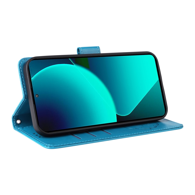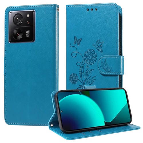 Funda de Cuero con Diseño de Mariposas y Flores En Relieve para Xiaomi 13T / 13T Pro / Redmi K60 Ultra (Azul)
