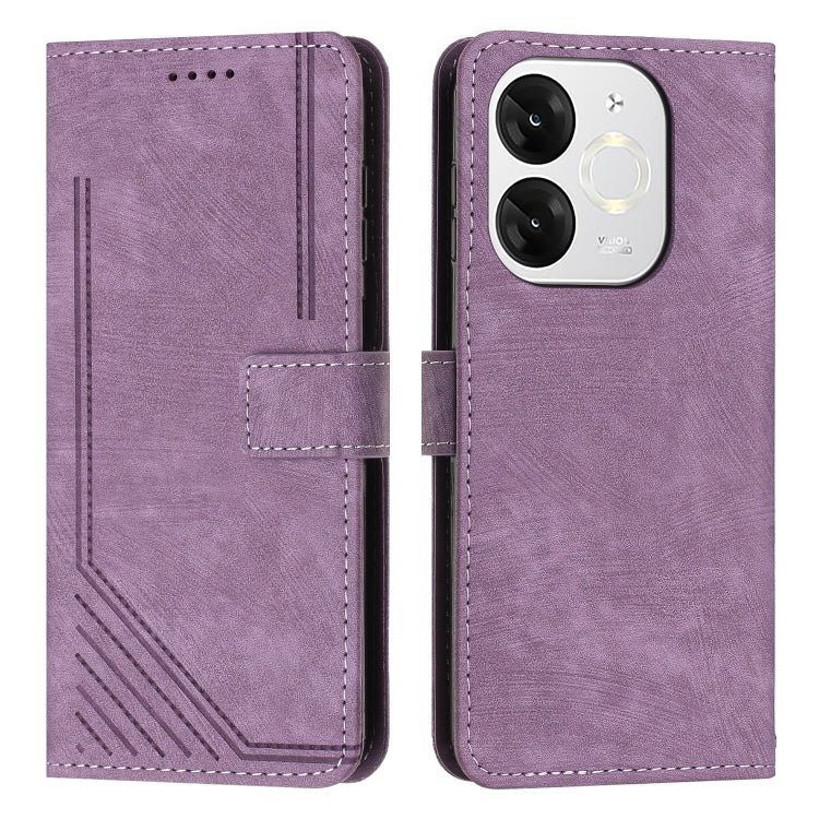 Funda de Cuero Itel A80 con Diseño de Rayas y Cordón (Morado)