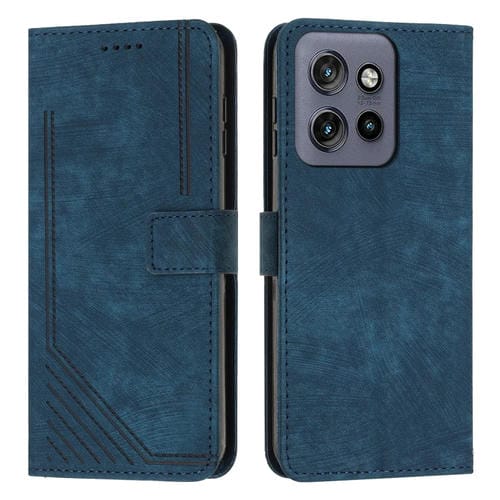 Funda de Cuero Motorola Edge 50 Neo Diseño de Rayas Tacto Agradable (Azul)