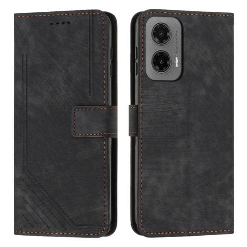Funda de Cuero para Motorola Moto G35 con Diseño de Rayas y Tacto Agradable (Negro)
