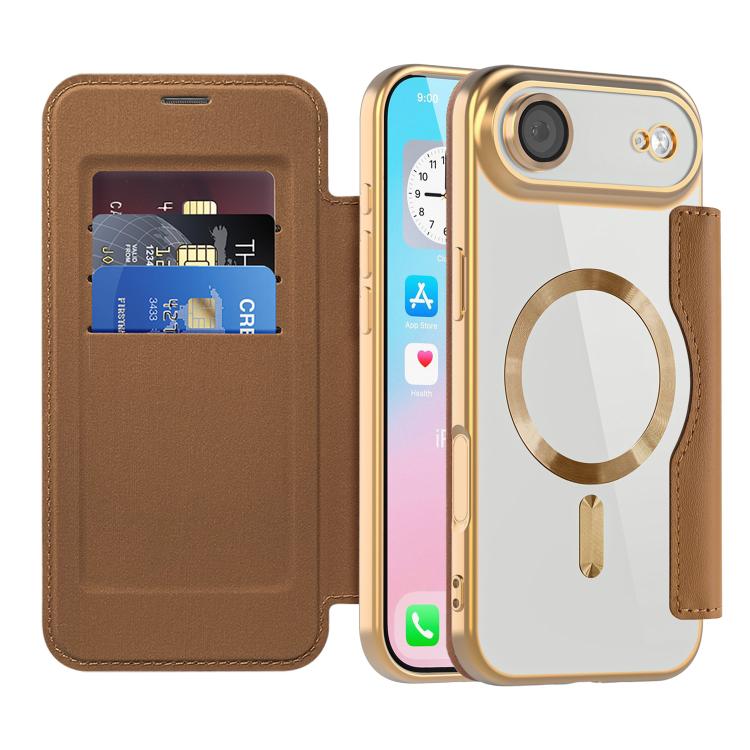 Funda de cuero con diseño de rombos y Magsafe RFID antirrobo para iPhone 17 Air Shield (marrón)