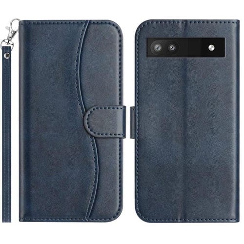 Funda de Cuero con Doble Pliegue en Forma de S para Google Pixel 6A (Azul Marino)