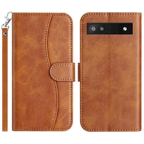 Funda de Cuero con Doble Pliegue en Forma de S para Google Pixel 6A (Marrón)