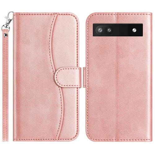 Funda de Cuero con Doble Pliegue en Forma de S para Google Pixel 6A (Oro Rosa)
