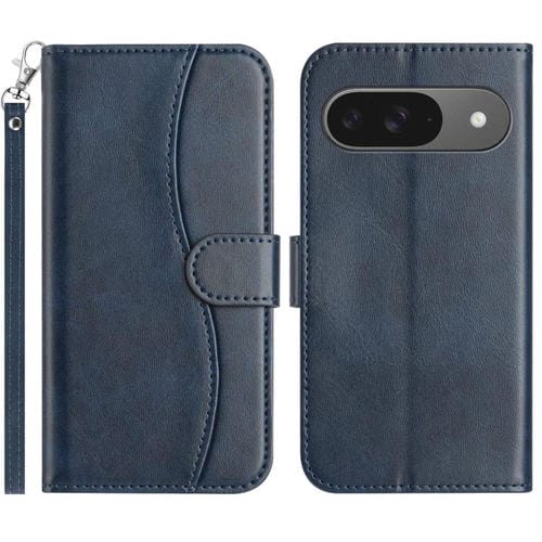 Funda de Cuero con Doble Pliegue en Forma de S para Google Pixel 9/9 Pro (Azul Marino)