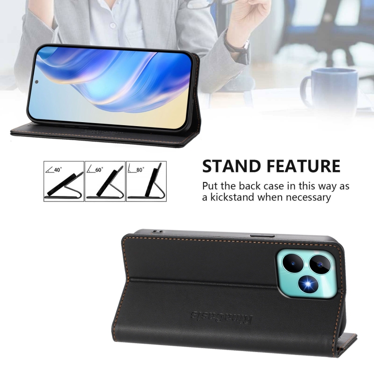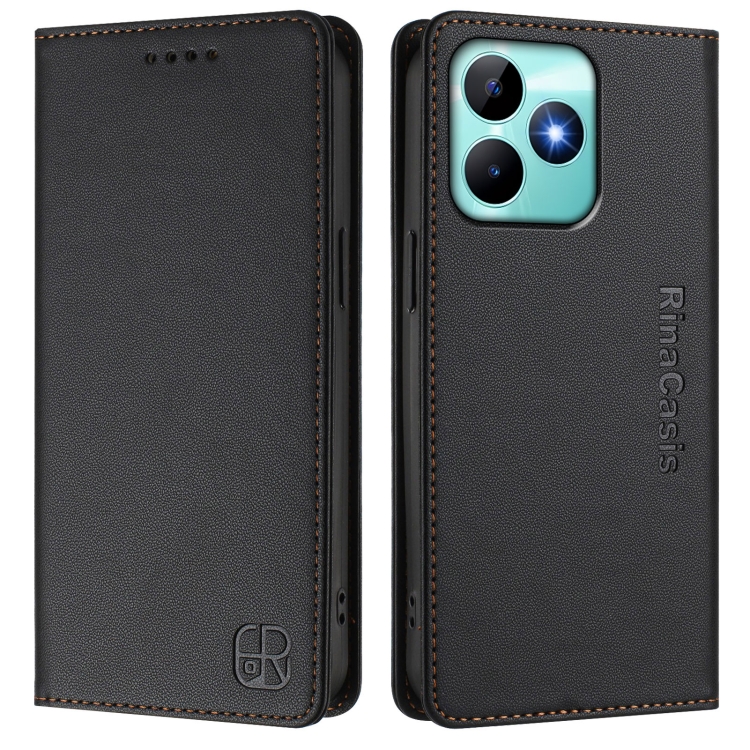 Funda de Cuero con Doble Pliegue y Succión Magnética para Realme Note 50 4G / C51 4G / C53 4G Rc01 (Negra)