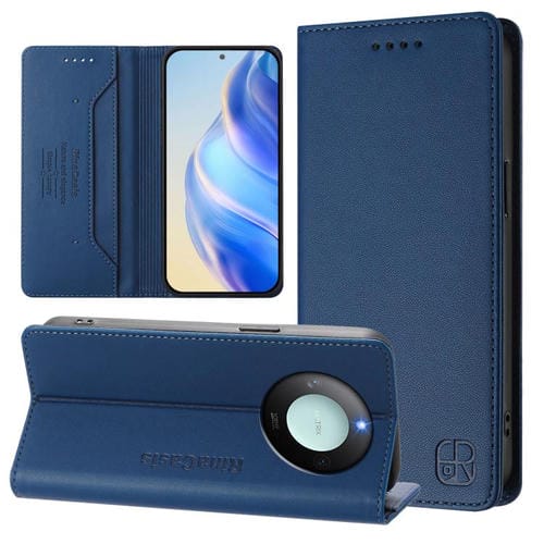 Funda de Cuero con Doble Pliegue y Succión Magnética Rfid para Honor X60/X9C Smart Rc01 (Azul Oscuro)