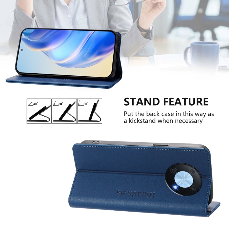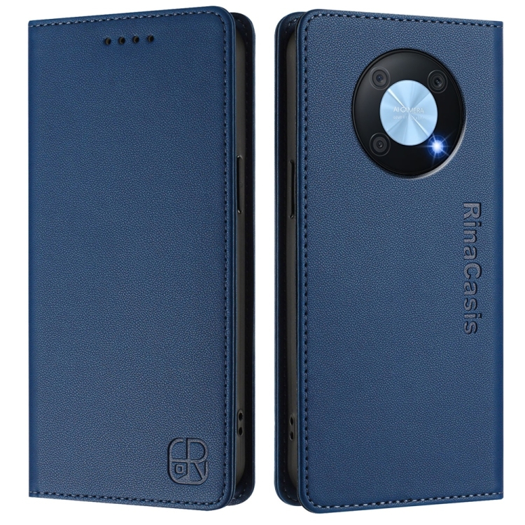 Funda de Cuero con Doble Pliegue y Succión Magnética RFID para Huawei Enjoy 50 Pro/Nova Y90 Rc01 (Azul Oscuro)