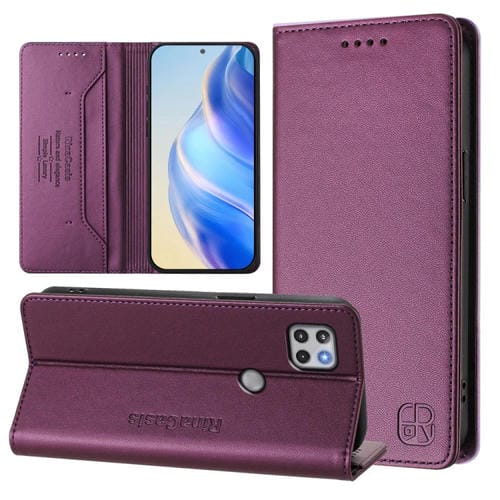 Funda de Cuero Motorola One 5G Ace Rc01 con Doble Pliegue y Succión Magnética Rfid (Violeta)