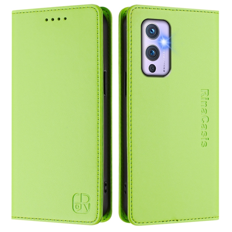 Funda de Cuero con Doble Pliegue y Succión Magnética Rfid para OnePlus 9 Rc01 (Verde Hierba)