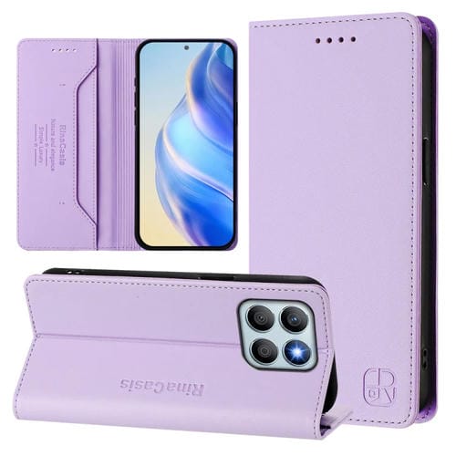 Funda de Cuero Rfid con Doble Pliegue y Succión Magnética para Honor X8B Global Rc01 (Morado Claro)