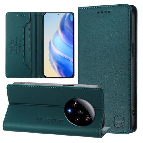 Funda de Cuero con Doble Pliegue y Succión Magnética Rfid para Xiaomi 13 Ultra Rc01 (Verde Oscuro)