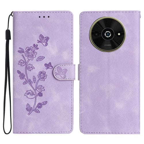 Funda de Cuero con Estampado de Flores y Mariposas para Xiaomi Poco C61 (Morado)