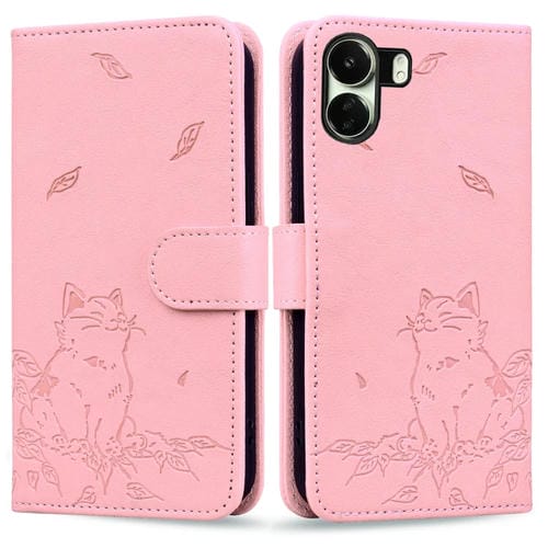 Funda de Cuero con Estampado de Gato para Redmi 13C 4G (Rosa)