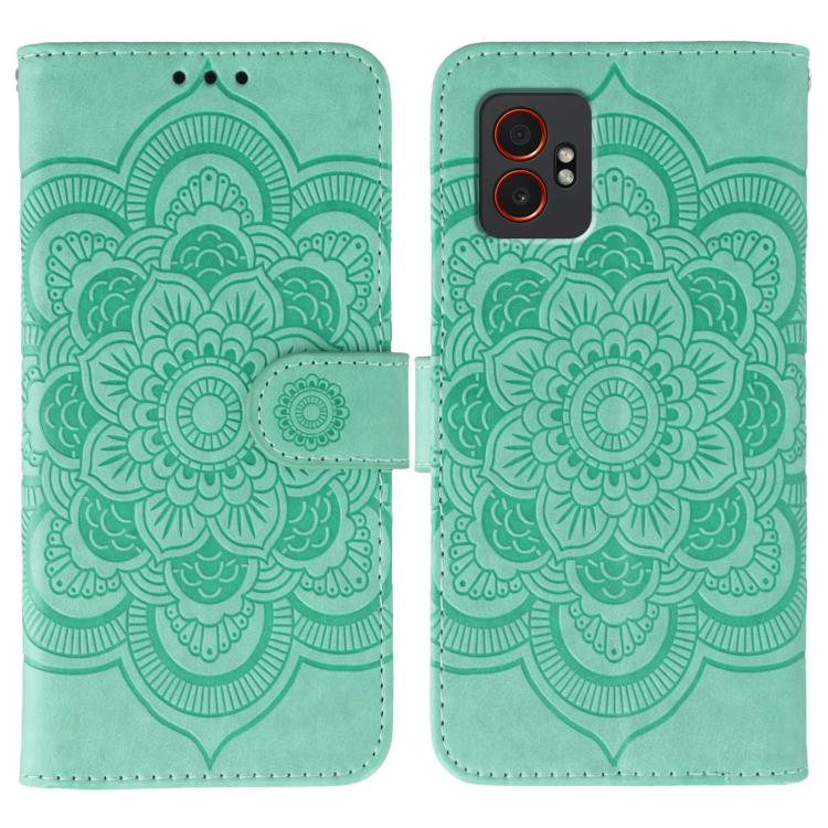 Funda de cuero con estampado de mandala y sol para Samsung Galaxy XCover7 Pro (verde)