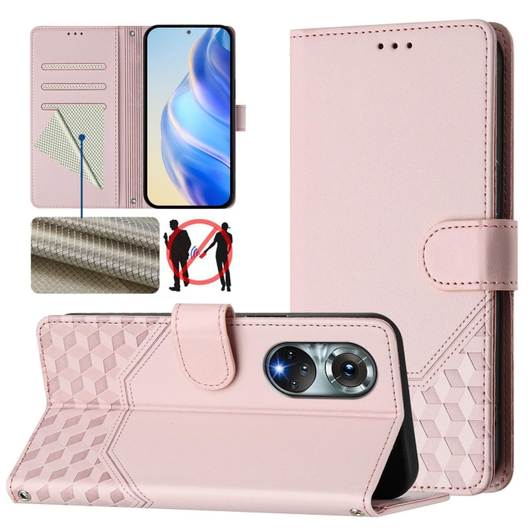 Funda de Cuero con Estampado de Panal Rfid para Huawei Nova 9 (Rosa)