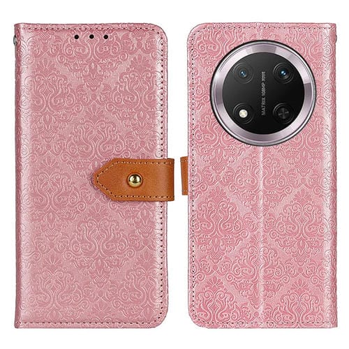 Funda de Cuero con Estampado Floral Europeo para Honor X9C (Rosa)