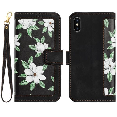Funda Cuero iPhone Xs Max Estampado Floral con Cordón (Negro)