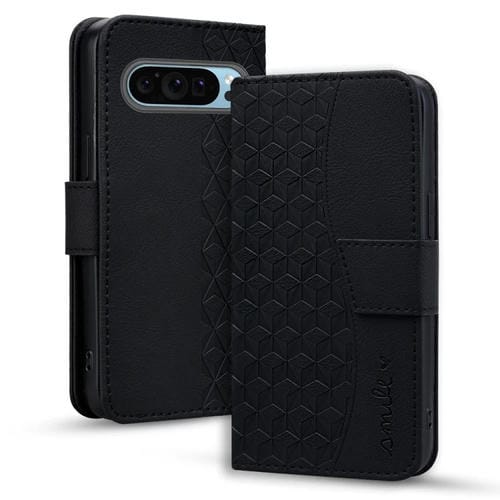 Funda de Cuero con Hebilla de Diamante para Google Pixel 9 Pro XL con Cordón (Negro)