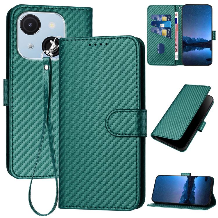 Funda de Cuero con Hebilla de Fibra de Carbono para Teléfono Itel A50C Yx0070 con Cordón (Verde Oscuro)