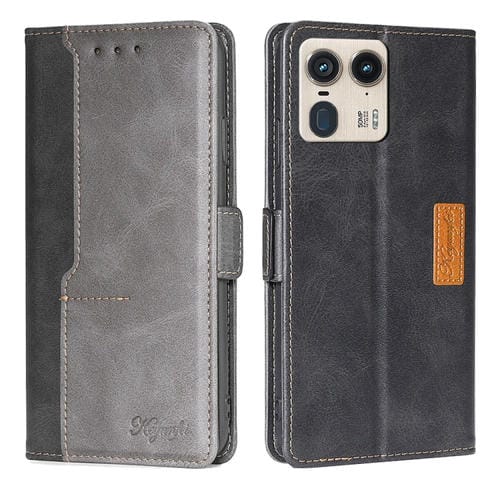 Funda de Cuero con Hebilla Lateral y Color de Contraste para Motorola Edge 50 Ultra (Negro y Gris)