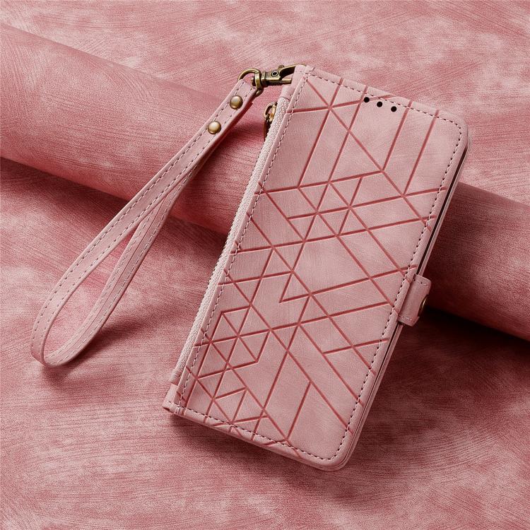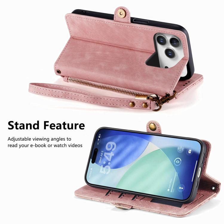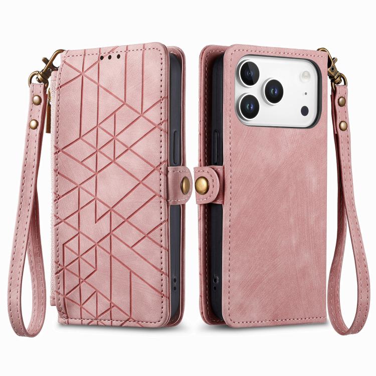 Funda de cuero con hebilla lateral y cremallera geométrica para iPhone 17 Pro (rosa)
