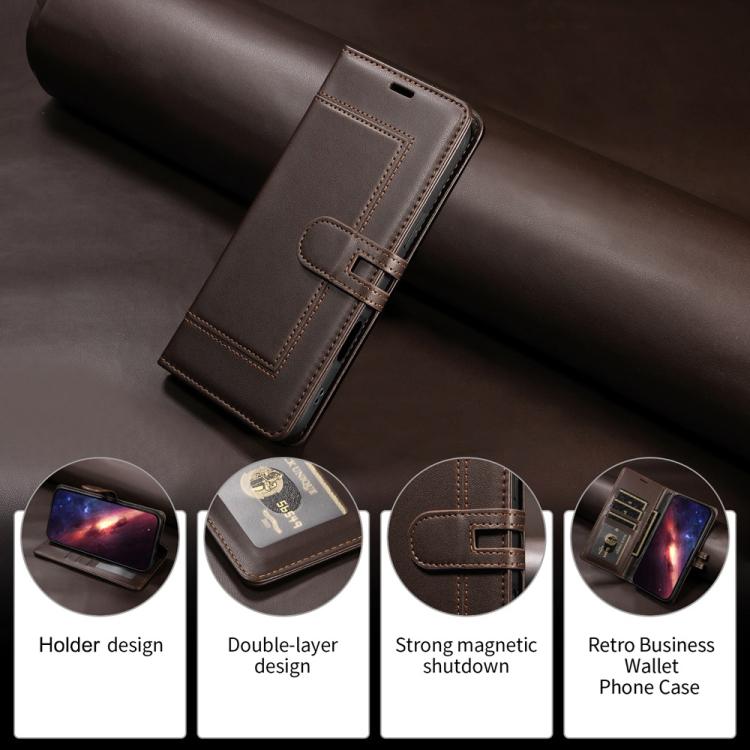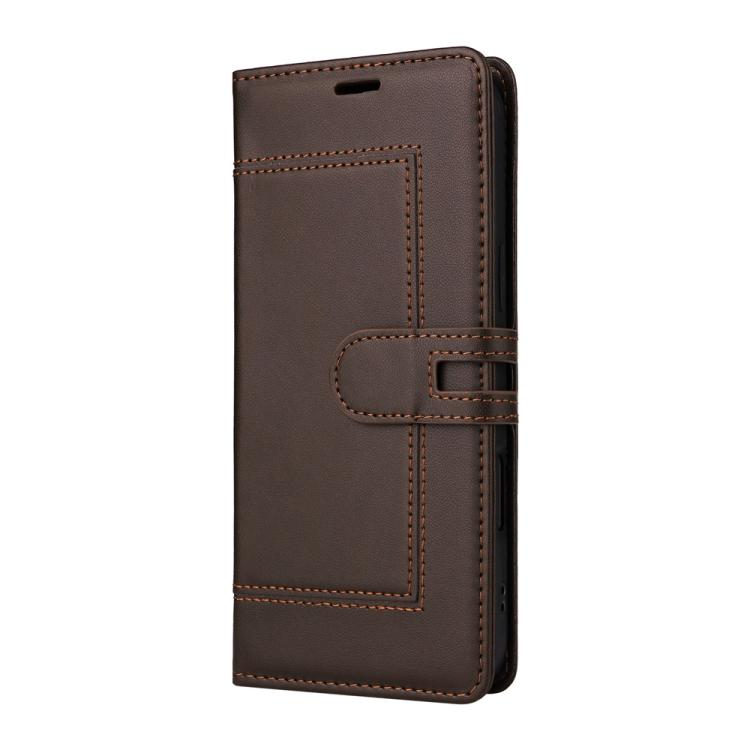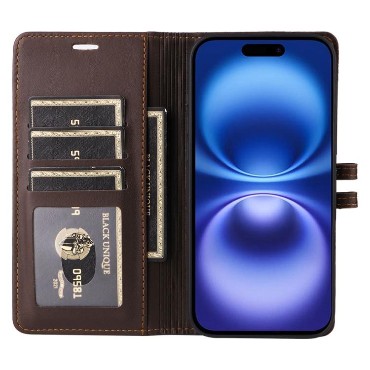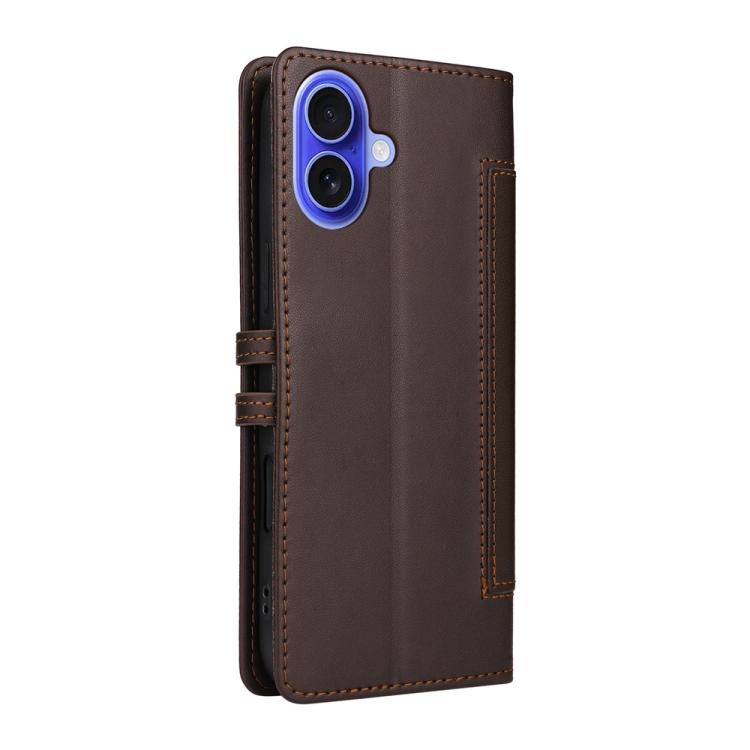 Funda de cuero con hebilla magnética cosida para iPhone 17 (café)