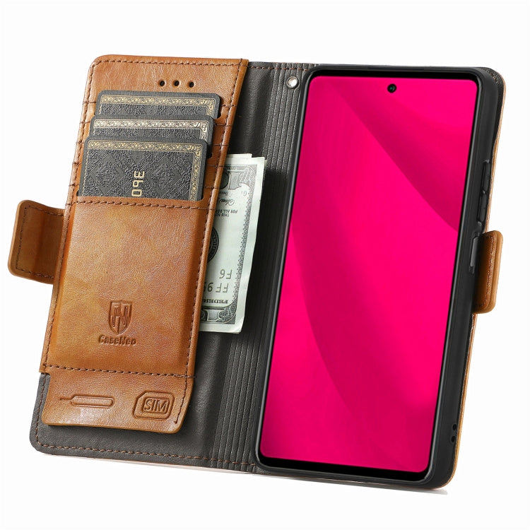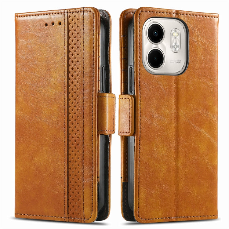 Funda de Cuero Caseneo Splicing con Hebilla Magnética Dual para Infinix Smart 9 (Caqui)