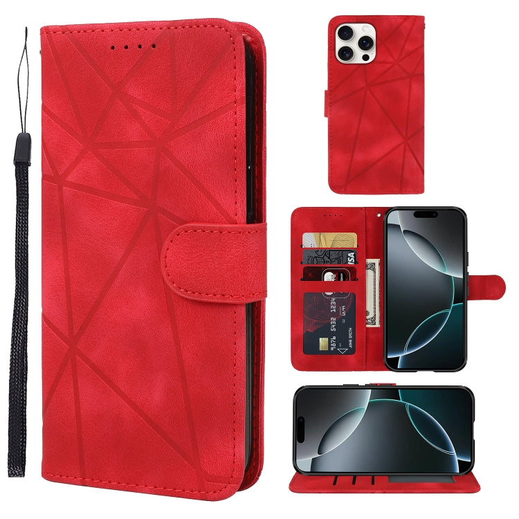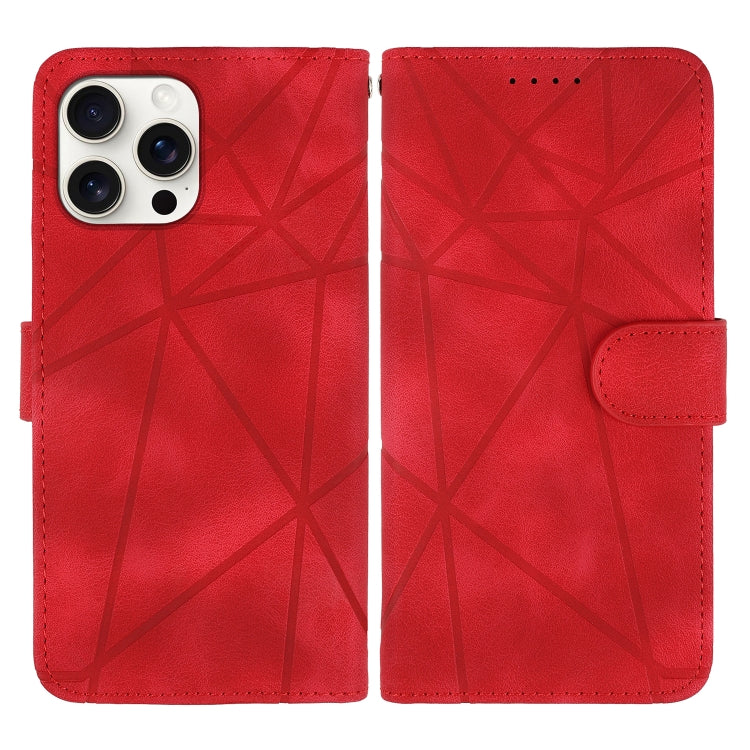 Funda de Cuero iPhone 16 Pro Líneas Geométricas Tacto Sedoso (Rojo)