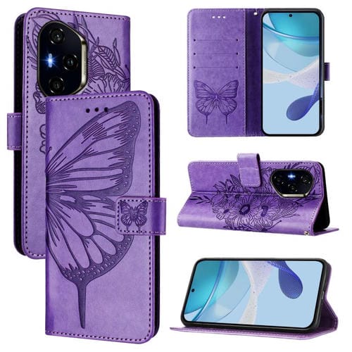 Funda de Cuero para Honor 400 con Mariposa en Relieve (Morada)