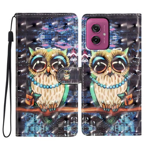Funda de Cuero para Motorola Moto G55 con Patrón 3D Búho de Ojos Grandes