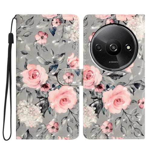Funda de Cuero con Patrón 3D para Redmi A3 (Flor de Base Gris)