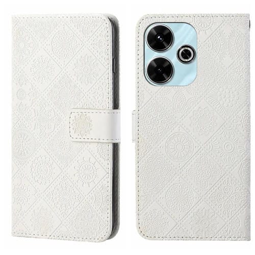 Funda de Cuero con Patrón En Relieve de Estilo Étnico para Redmi 13 4G (Blanca)